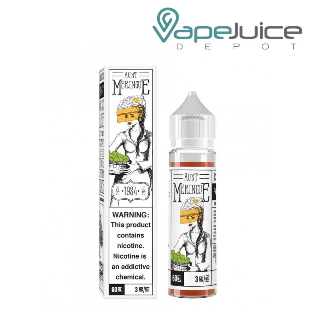 Aunt Meringue vape juice from Charlie’s Chalk Dust comes in a 60ml unicorn bottle with a blend of 70/30 VG/PG, making it a nice choice for some large clouds and a solid throat hit.